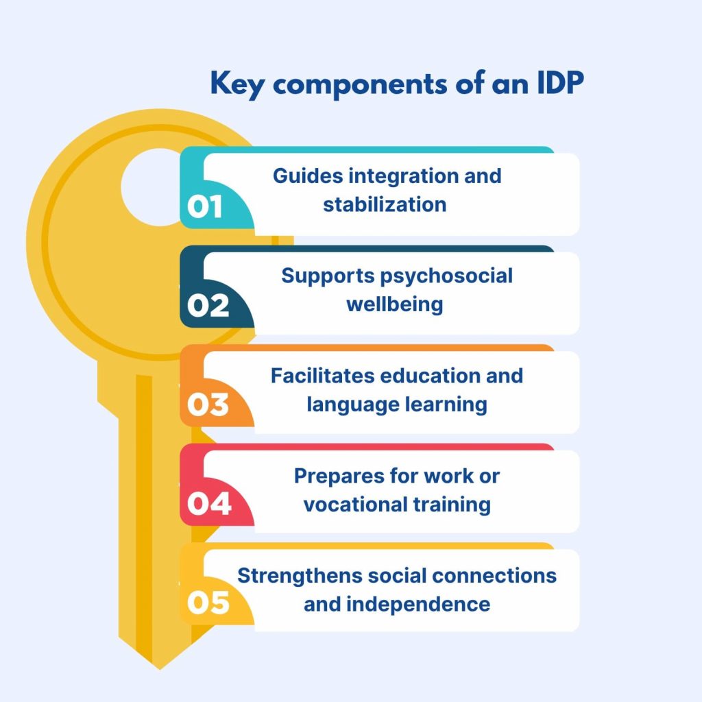 An Individual Development Plan (IDP) is a personalized, structured plan that helps a person—especially someone in a vulnerable situation—identify their: